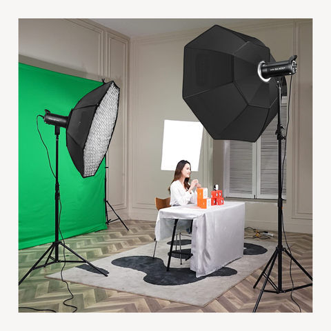 Kit de iluminação para estúdio fotográfico portátil, caixa de luz para estúdio fotográfico, guarda-chuva octagonal com suporte para montagem em Bowen, kit de iluminação para estúdio fotográfico
