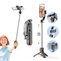 Tripé aberto automático em aço inoxidável com rotação remota de 360 graus e design dobrável para suporte de telefone e selfie stick